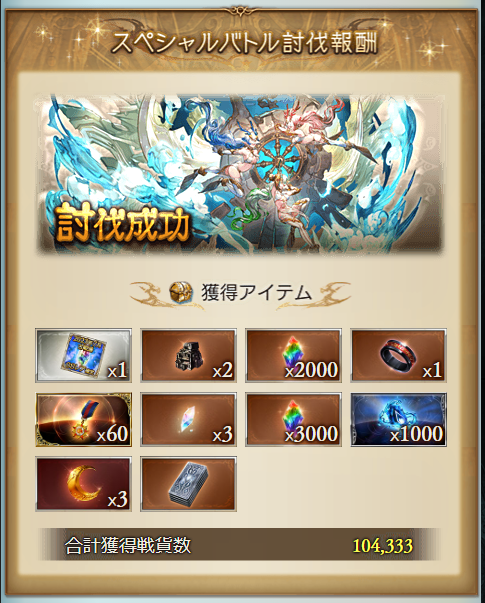 古戦場終了。お楽しみのコンゴーチャンス!残念ながらハズレ!当たらんねぇ…