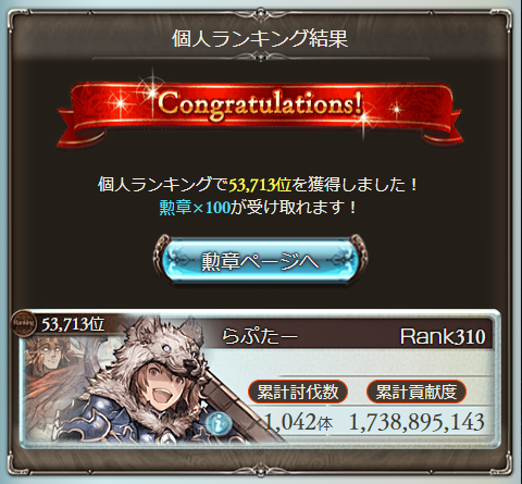 今回の古戦場は最終的に17億稼いで53,713位次の属性は何かねぇ…夏のキャンペーンで補強できればいいんだけど