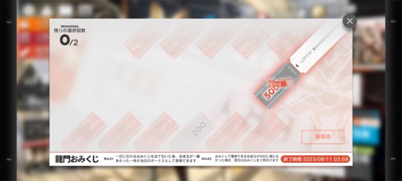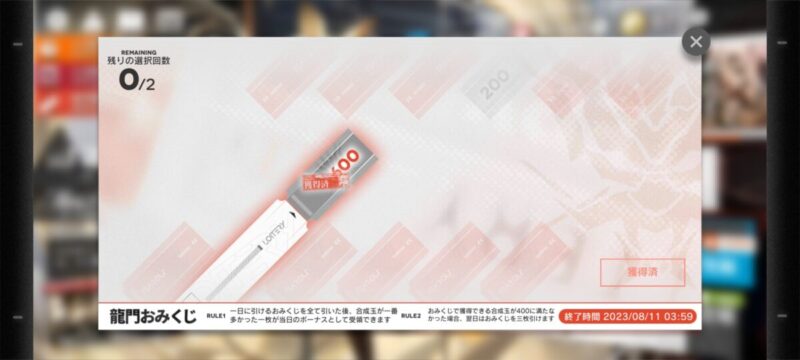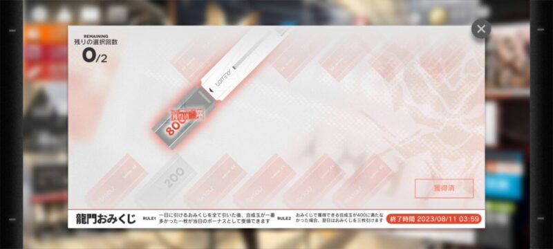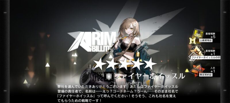 おみくじ!昨日は600石今日は800石単発は昨日は白今日は金!ピックアップのファイヤーホイイッスル都合3人目チョンユエはアイリーニを使ってスキル3を特化3にしたったあとイベント「登臨意」も終わらせた