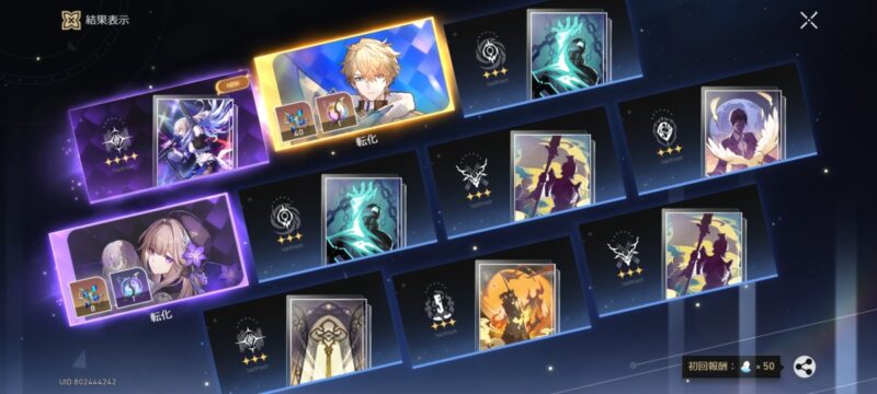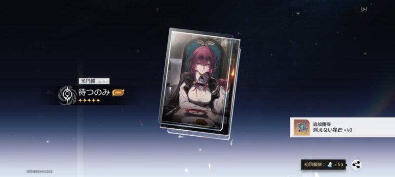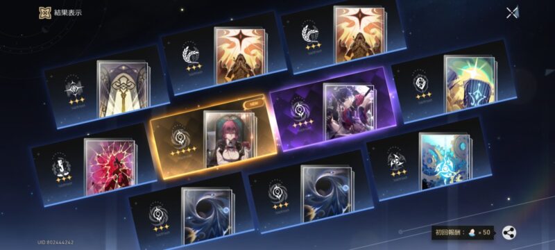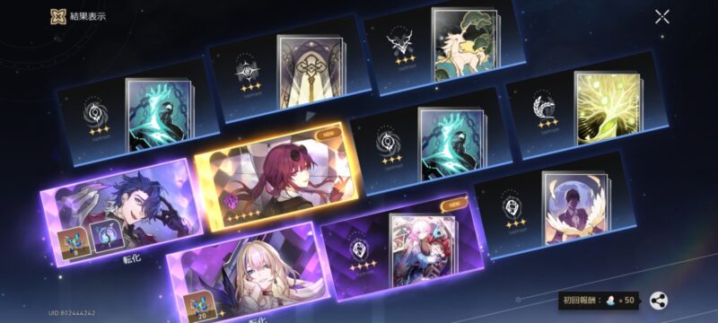 地味にやってるスターレイル。カフカが欲しくてずっと石を貯めてたのでぶっぱしてきた!50連目で無事ゲットモチーフの光円錐もほしいので回す!こちらも丁度50連目でゲットおまけで常設のチケットも10連分あったので回すまたお前かジェパード…………というか常設ガチャからお前しかでないのはなんでなん?なんかの呪い?