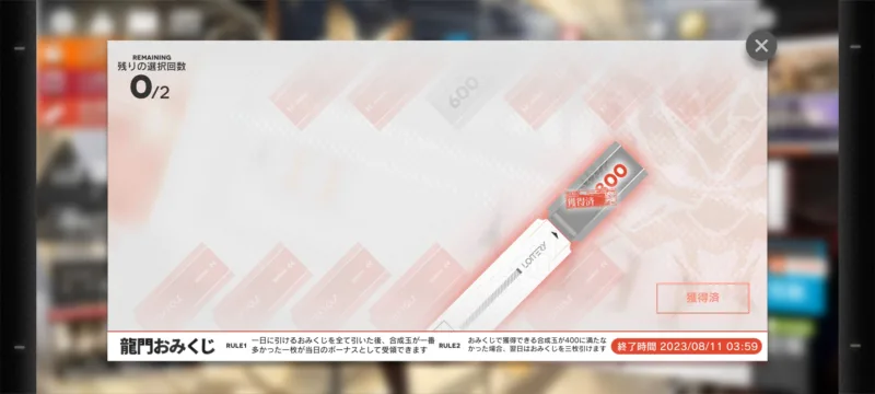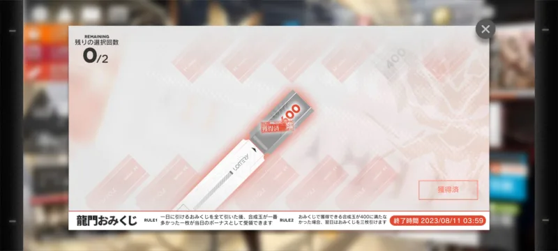とりあえず1.5回分はあるので結果にかかわらず天井はするんよ。それでは結果!