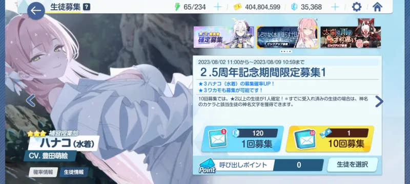 30連で水着ハナコをゲット。とりあえず100連まではこんな感じ