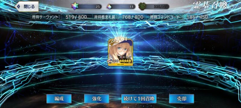 礼装1枚でいいとこなし。しょうがないので呼符で単発でも…