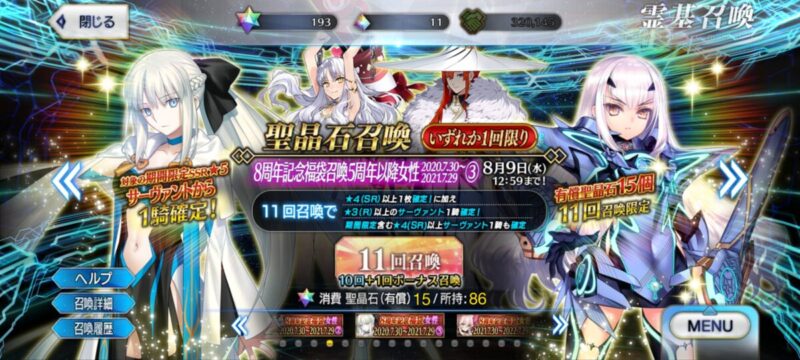 結果はアムールと水着エリセ。うーん今回もメリュ子はダメだったか…
