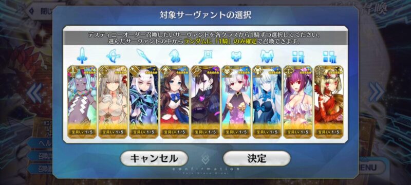 自分は持ってないキャラメインで固めた!モルガン以外は未所持でほしいやつ。メリュ子、水着スカディ、ドラコーだとうれしいな